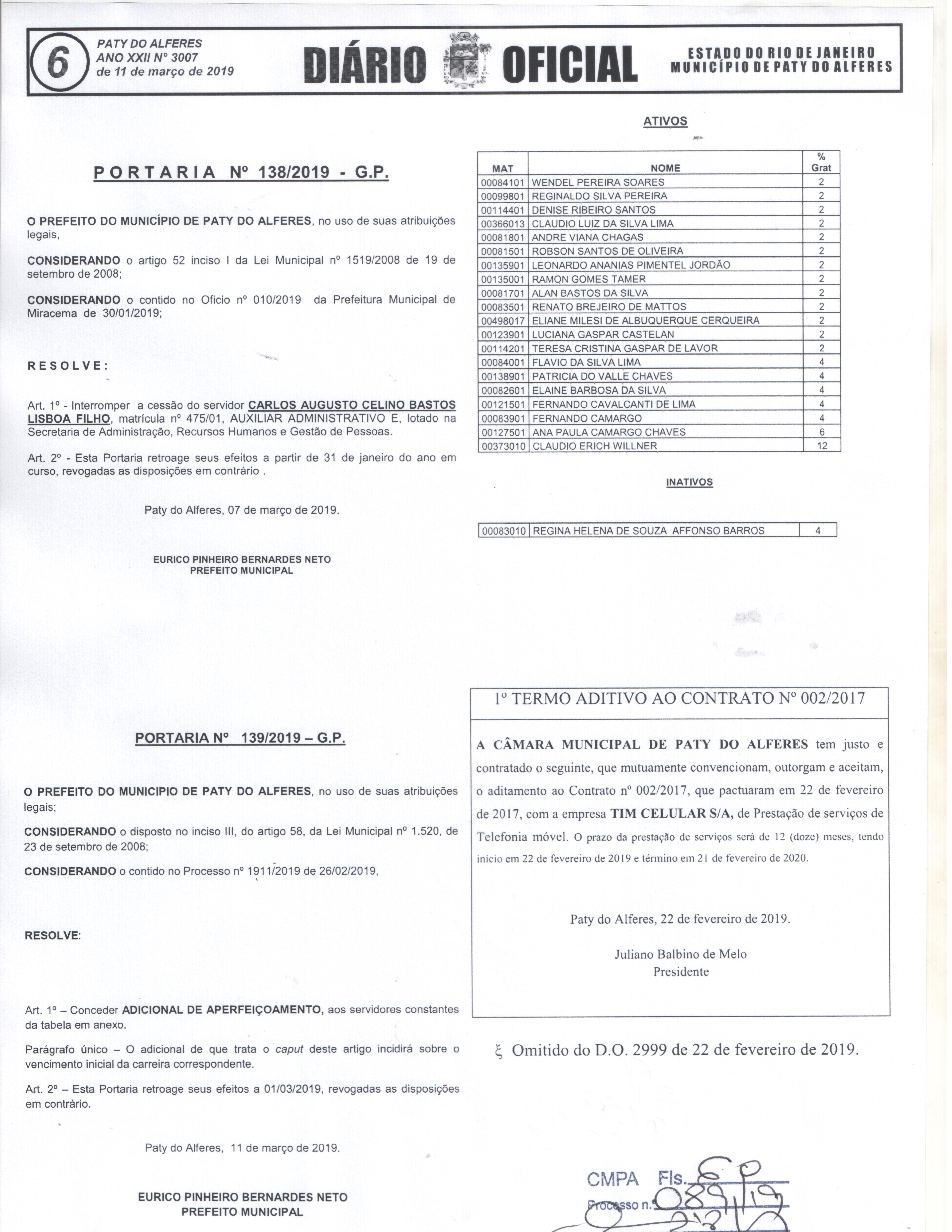 Publicado no Diário Oficial Nº 3007 de 11 de Março de 2019.