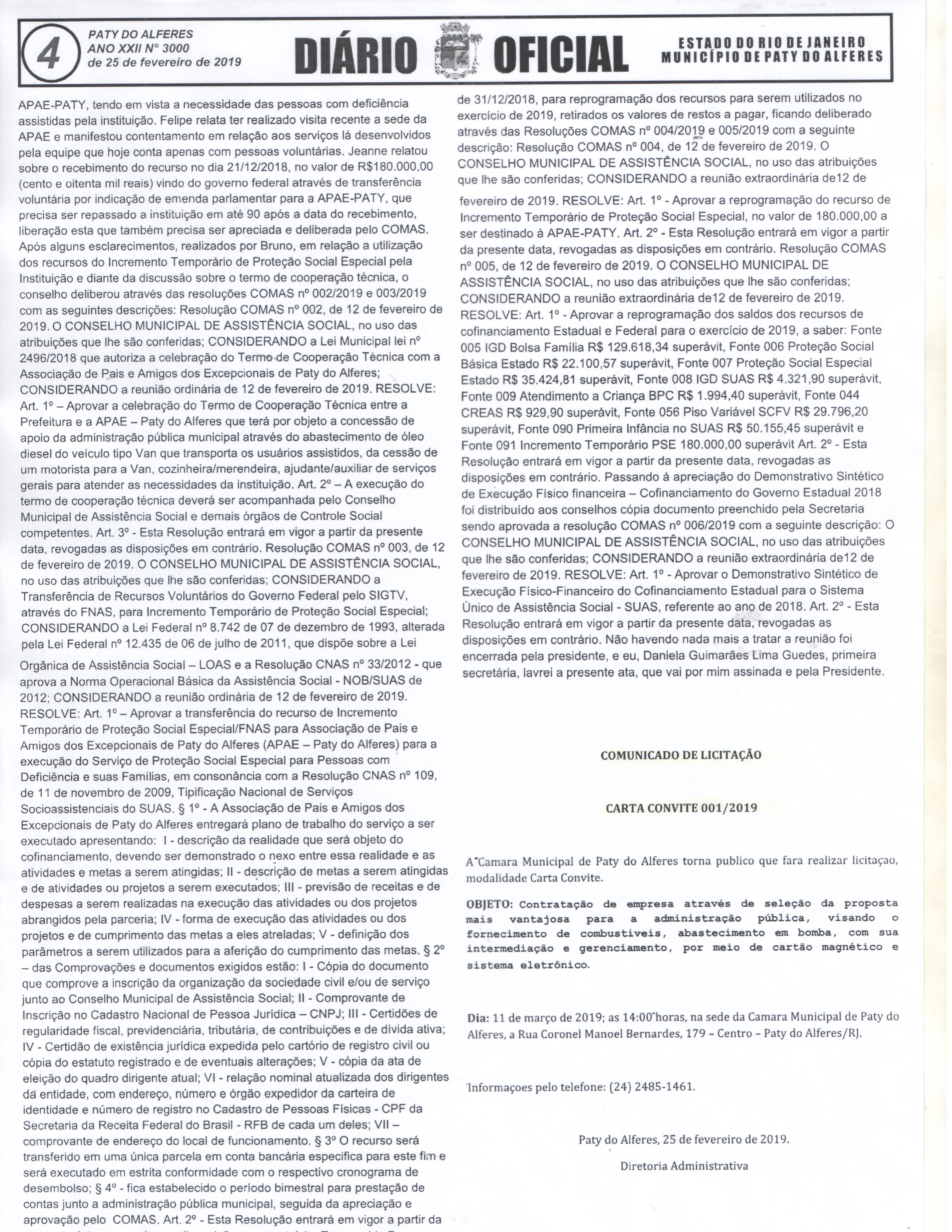 Carta Convite 001/2019